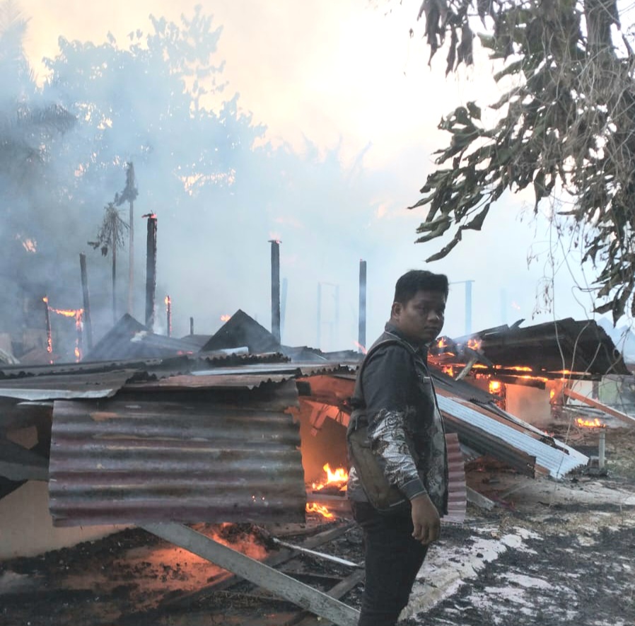 9 Unit Rumah Papan Eks Karyawan PT ADEI Kota Tebingtinggi yang sudah tutup ludes terbakar. Penyebab kebakaran masih dalam lidik kepolisian setempat. (AM Sitorus/Sumutpost.id)