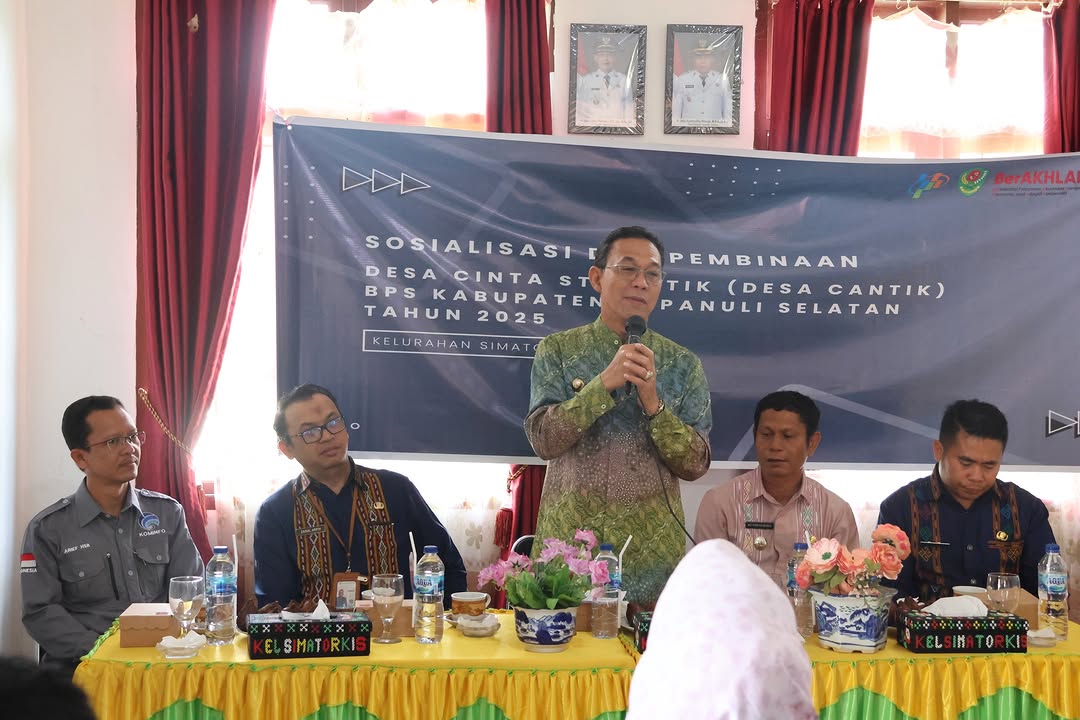 “Data sangat penting. Merupakan pondasi utama dalam menyusun kebijakan pubik,” sebutnya saat menghadiri Sosialisasi dan Pembinaan Desa Cinta Statistik (Desa Cantik) yang digelar di Kelurahan Simatorkis Sisoma, Kecamatan Angkola Barat, Kamis (22/5/2025) kemarin.