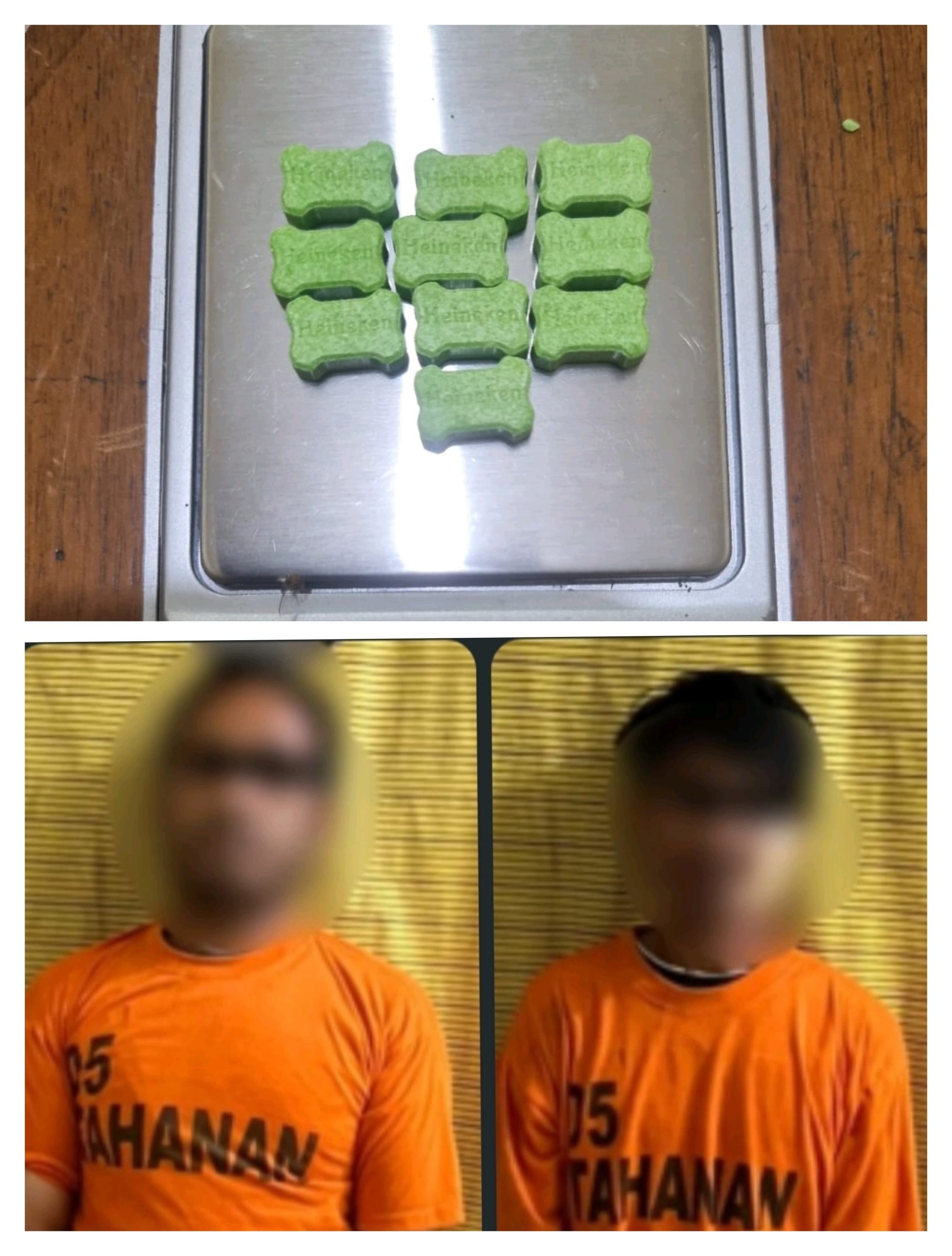 Petugas pun bergerak cepat mengamankan kedua terduga. Dari hasil penggeledahan, ditemukan barang bukti berupa 1 plastik klip transparan berisi 10 butir narkotika jenis ekstasi warna hijau dengan berat netto 4,30 gram, 1 unit sepeda motor Honda Vario BK 2714 MAW, serta uang tunai Rp50.000.