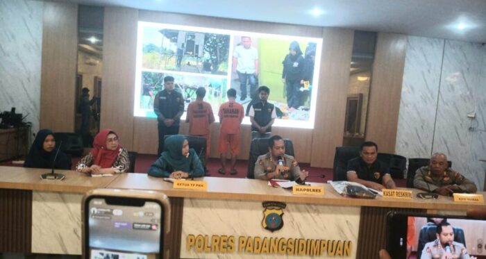 “Keduanya (S dan AYL-red) ini, bapak dan anak (kandung). Kini di tahan Mapolres Padangsidimpuan. Kami masih memburu seorang (terduga pelaku) lagi, berinisial SL,” kata Kapolres Padangsidimpuan, AKBP Wira Prayatna, saat konferensi pers, Jum’at (30/5/2025) malam.