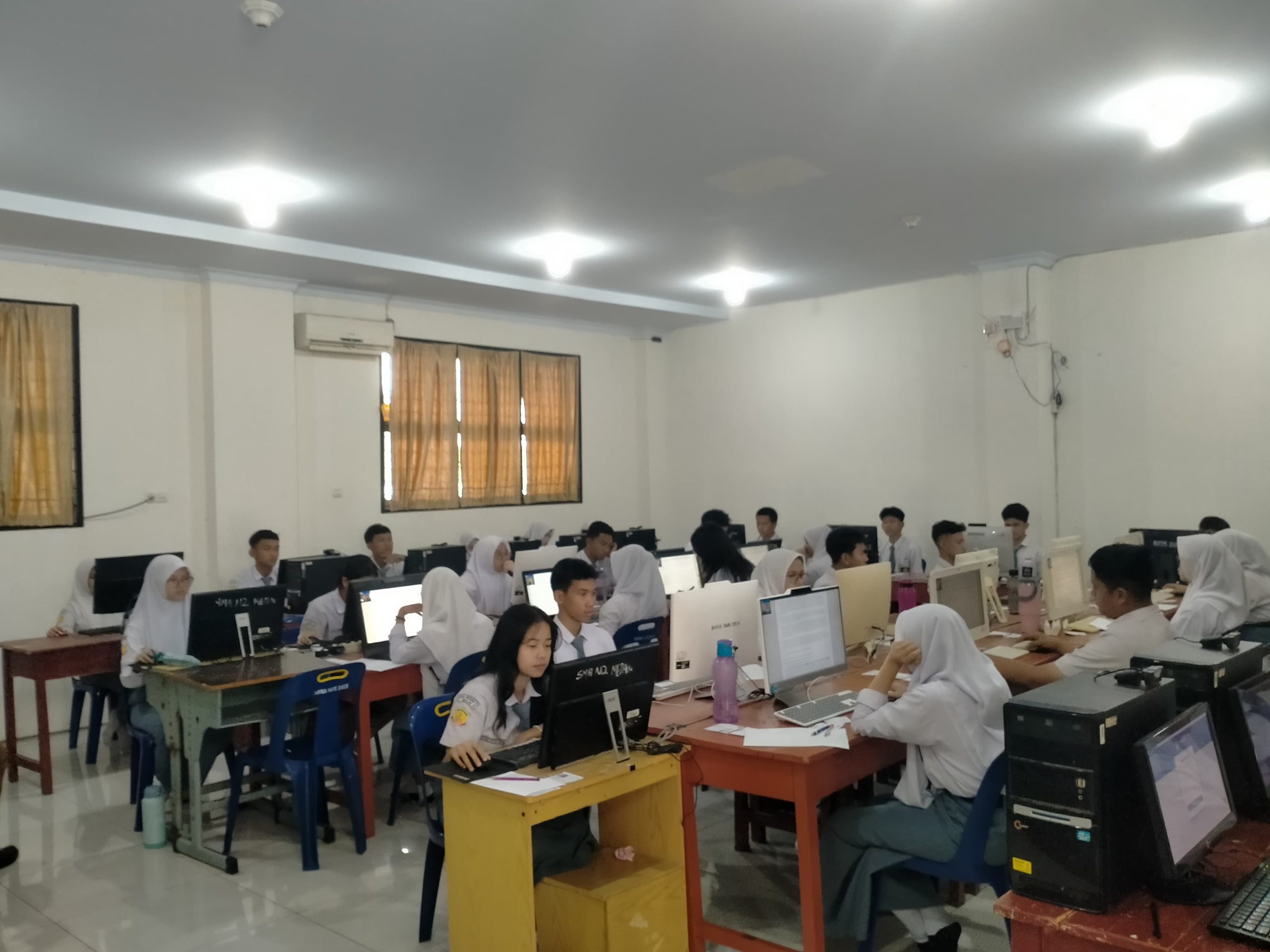Suasana diruangan saat anak kelas XII mengikuti TKA hari pertama di SMAN 2 Medan. (Humas Smandu for Sumutpost.id)