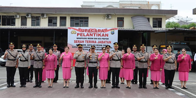 Sertijab Wakapolrestabes Medan, Kasi Propam, Kabag SDM dan empat kapolsek itu merupakan tindak lanjut dari Surat Telegram (ST) Kapolda Sumut, Irjen Pol Whisnu Hermawan Februanto No: ST/287/IV/KEP/2025 Tanggal 9 April 2025 tentang pemberhentian dari dan pengangkatan dalam jabatan di lingkungan Polri. (msp)
