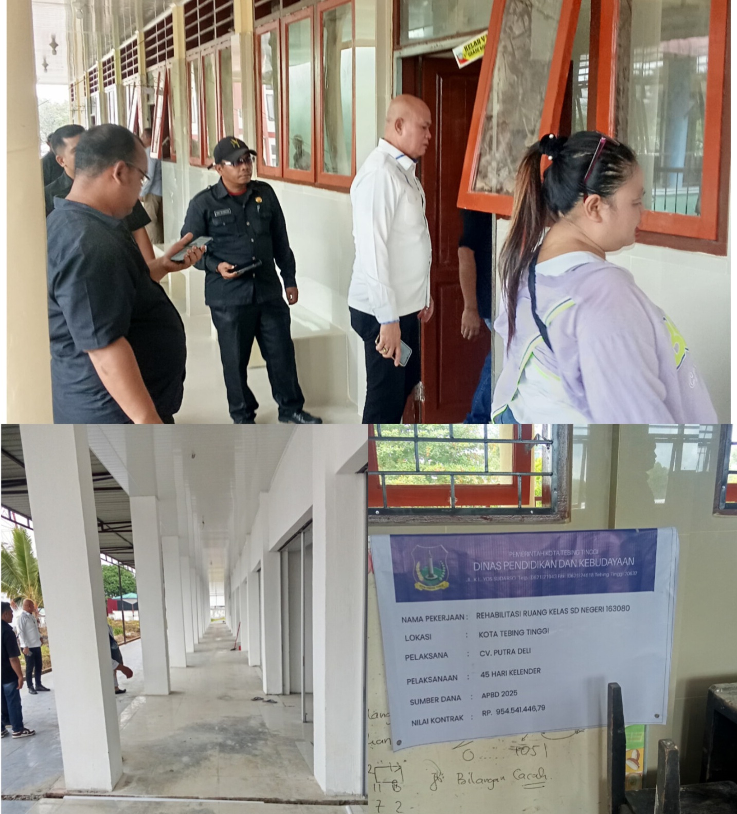 2. Proyek Rehabilitasi Ruang Kelas SD Negeri 163080 (Dinas Pendidikan dan Kebudayaan) sebanyak 7 ruangan. Pelaksananya CV Putra Deli dengan Nilai Kontrak Rp. 954.541.446,79. Tanda Tangan Kontrak dimulai tanggal 13–14 November 2025, dengan Jangka Waktu Penyelesaian 45 hari dan Estimasi Selesai 28 Desember 2025.