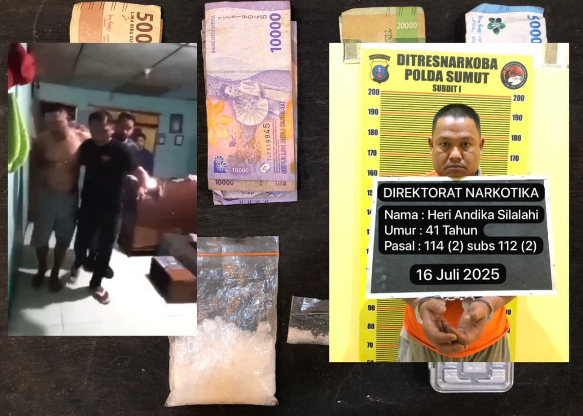 Tersangka yang diamankan adalah Heri Andika Silalahi alias Heri (41), warga Jalan Nagur Gang Gajah Mada, Kelurahan Martoba, Kecamatan Siantar Utara, Kota Pematang Siantar. Dalam penindakan tersebut, petugas turut menyita sejumlah barang bukti narkotika jenis sabu, alat bantu, dan barang lainnya yang berkaitan dengan aktivitas peredaran narkoba.