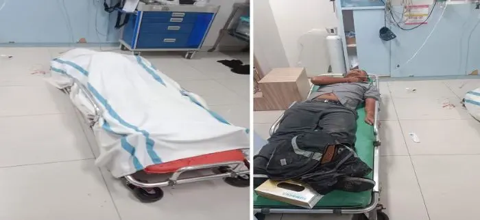 Jenazah istri dan (kanan) driver ojol saat masih di rumah sakit. (Ist/Sumutpost.id)