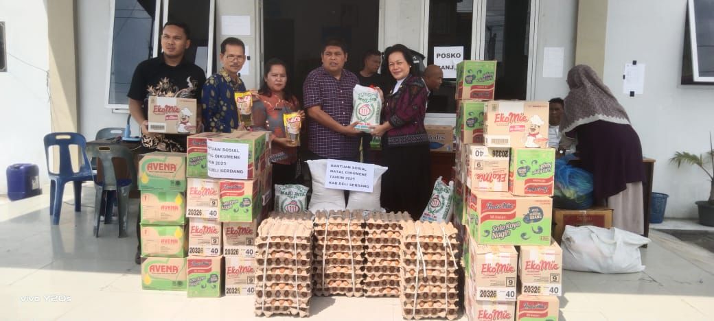 DELI SERDANG, Sumutpost.id – Panitia Natal Oikumene Deli Serdang tahun 2025 menyalurkan bantuan sosial (Bansos) kepada masyarakat terdampak bencana banjir di Kecamatan Hamparan Perak, Kamis 4 Desember 2025. Bantuan tersebut berupa bahan pokok makanan yang sangat dibutuhkan masyarakat.