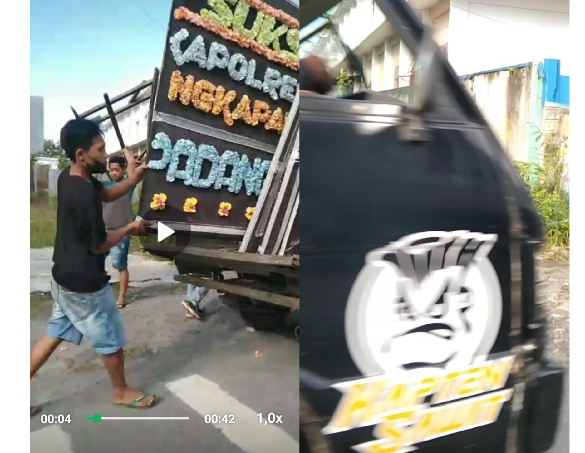 Dalam rekaman video berdurasi 42 detik itu, terlihat empat pemuda mengenakan masker mengangkut papan bunga ke atas mobil pikap berstiker “Kapten Sumut” di sisi pintu sopir. Tiga orang dengan sigap mengangkat papan bunga satu per satu, sementara seorang lainnya menunggu di kendaraan.