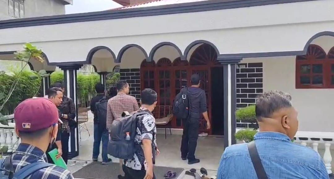 Suasana pemggeladahan di rumah Direktur Utama PT DNG di Jalan Mawar Kota Padangsidimpuan. (Ist/Sumutpost.id)