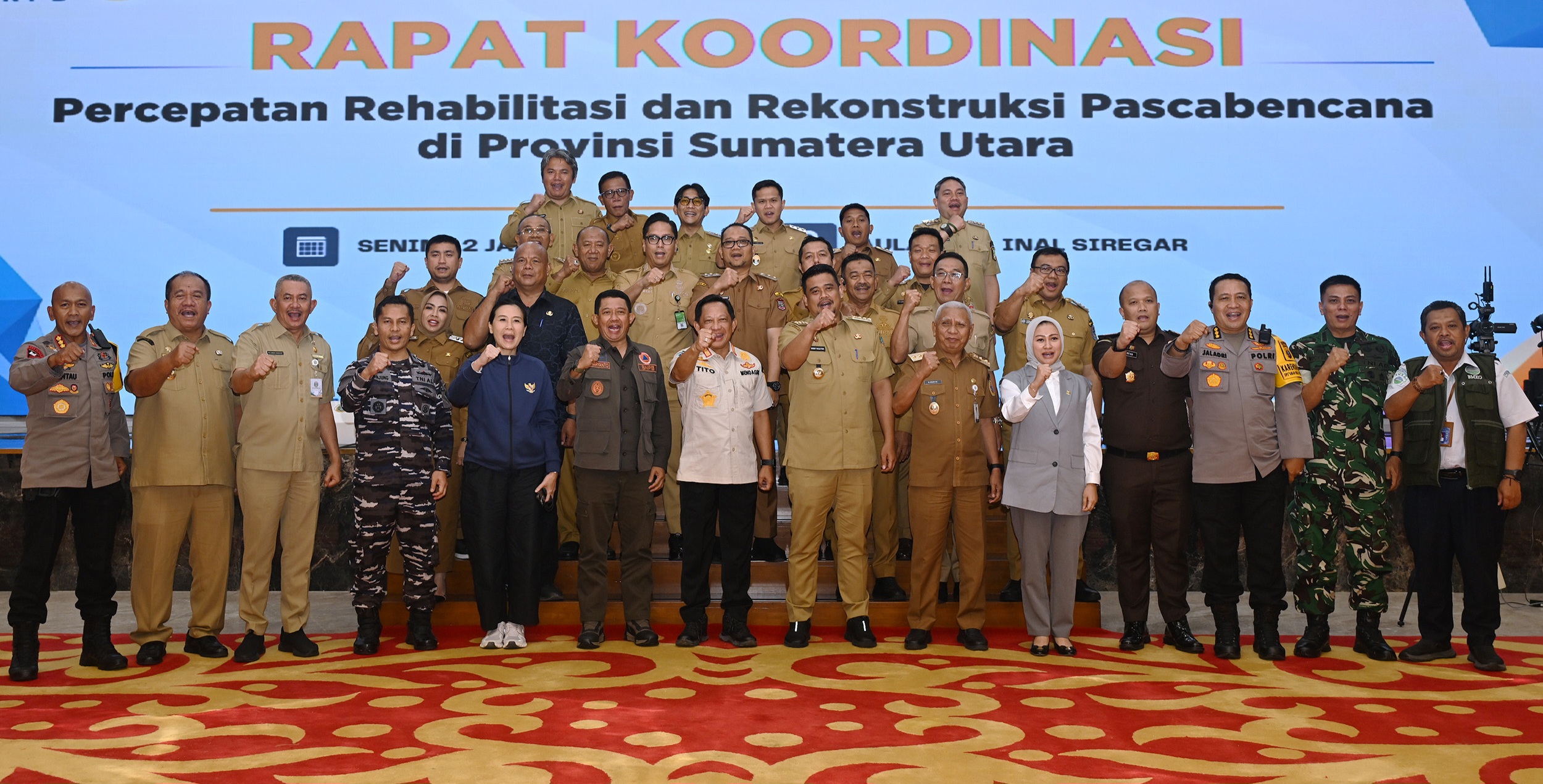 Gubernur Sumatera Utara (Sumut) Bobby Nasution bersama Wakil Gubernur Sumut Surya, Ketua DPRD Sumut Erni Ariyanti Sitorus, serta para Bupati dan Walikota Se-Sumut serta unsur Forkopimda melakukan Rapat Koordinasi Percepatan Rehabilitasi dan Rekonstruksi Pascabencana Provinsi Sumut. (Diskominfo Sumut for Sumutpost.id)