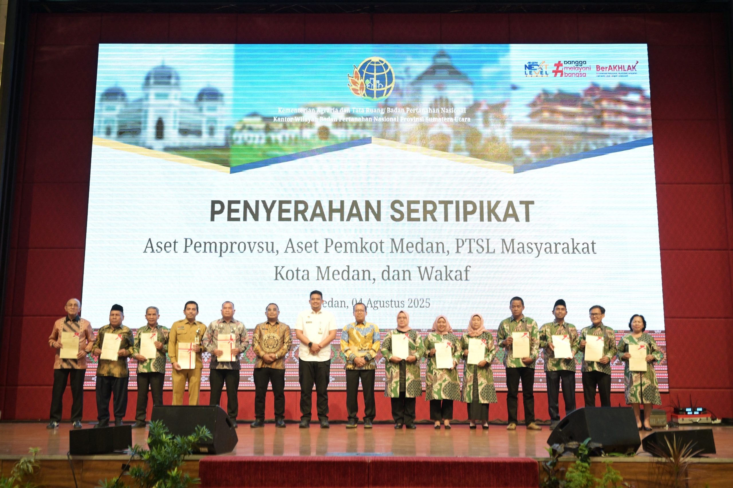 Gubernur Sumatera Utara (Sumut) Bobby Afif Nasution, bersama pihak terkait meluncurkan Layanan Peralihan Hak Atas Tanah (HAT) secara Elektronik di Hotel Adimulia, Jalan Diponegoro Nomor 8, Medan, Senin (4/8/2025). (Diskominfo Sumut for Sumutpost.id)