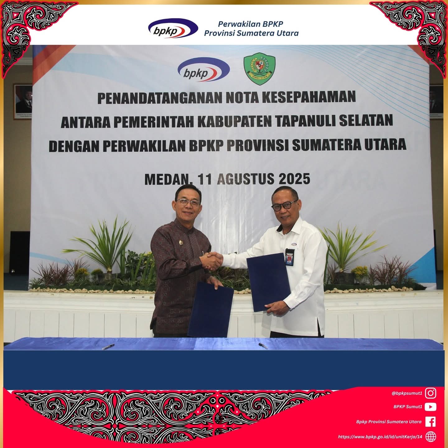 Penandatanganan dilakukan oleh Bupati Tapanuli Selatan H. Gus Irawan Pasaribu dan Kepala Perwakilan BPKP Sumut Farid Firman di Aula Kantor Perwakilan BPKP Provinsi Sumut, Senin (11/8/2025).