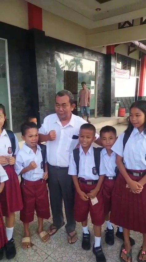 Gandi Parapat saat menyemangati sekaligus memberangkatkan anak sekolah hari pertama tanggal 5/1.2026, di GOR Tapteng Pengungsi Banjir Bandang. (Ist/dok/Sumutpost.id)