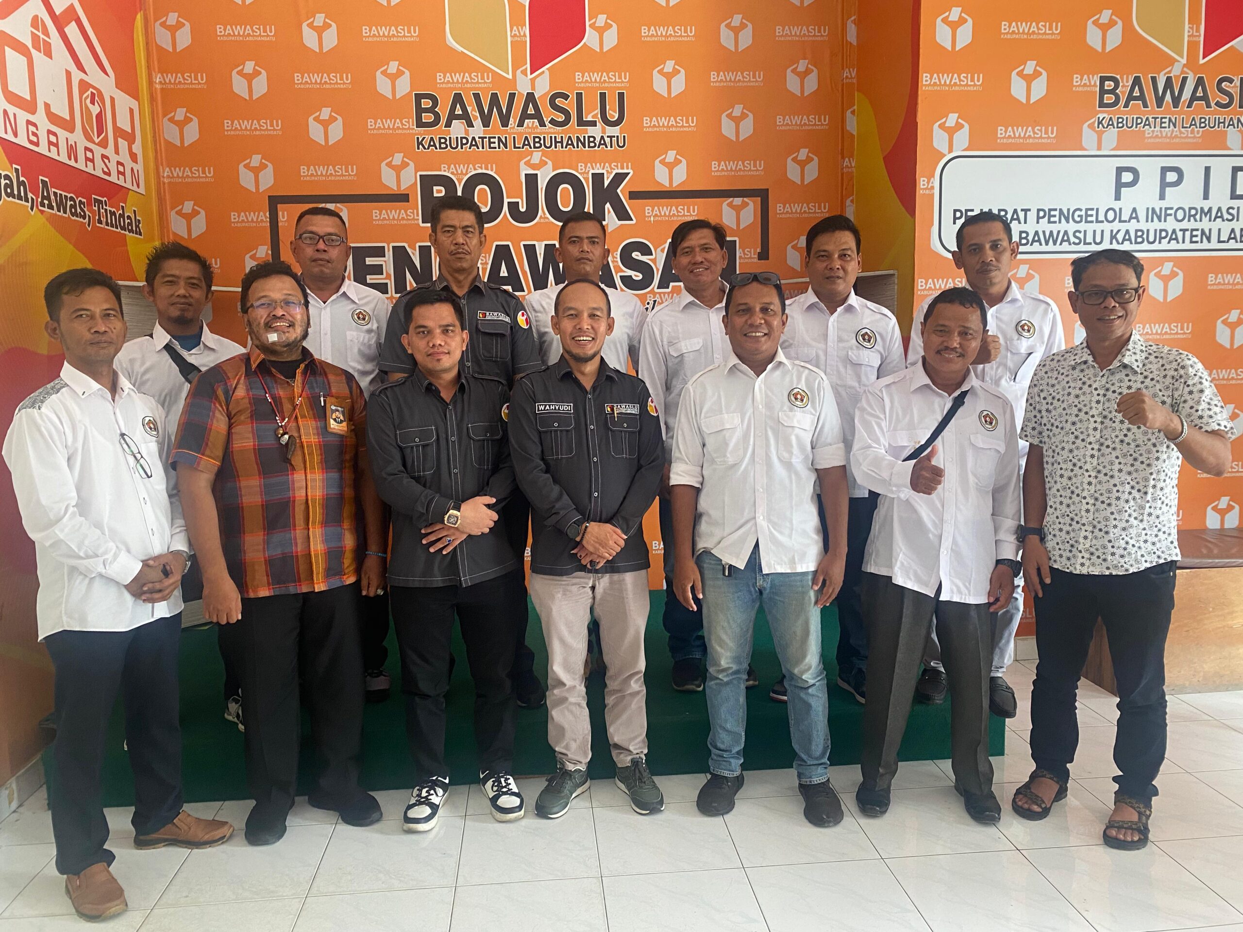 Persatuan Wartawan Indonesia (PWI) Kabupaten Labuhanbatu audiensi terkait stabilitas kegiatan Pilkada 2024 ke Badan Pengawas Pemilihan (Bawaslu) Kabupaten Labuhanbatu, Senin, (3/6) di Rantauprapat. (Niko/Sumutpost.id)
