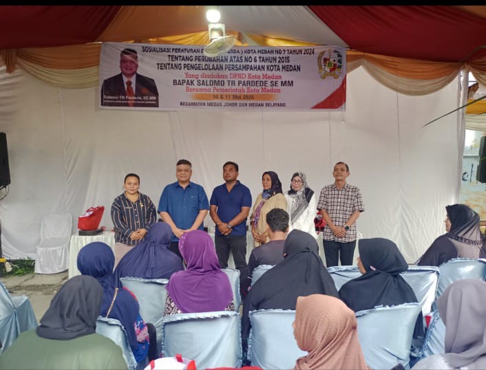 MEDAN, Sumutpost.id – Anggota DPRD Kota Medan Salomo T.R. Pardede, SE, MM mensosialisasikan Perda No. 7 tahun 2024 tentang Perubahan Atas Peraturan Daerah No. 6 tahun 2015 tentang Pengelolaan Persampahan di kelurahan Kuala Bekala dan Tanjung Sari, Sabtu, Minggu (10,11/5/2025).