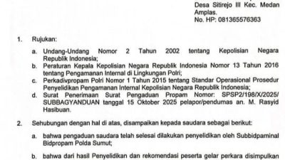 MEDAN, Sumutpost.id – Perkembangan kasus laporan sejumlah wartawan yang melaporkan Kapolsek Patumbak dan anggotanya di…