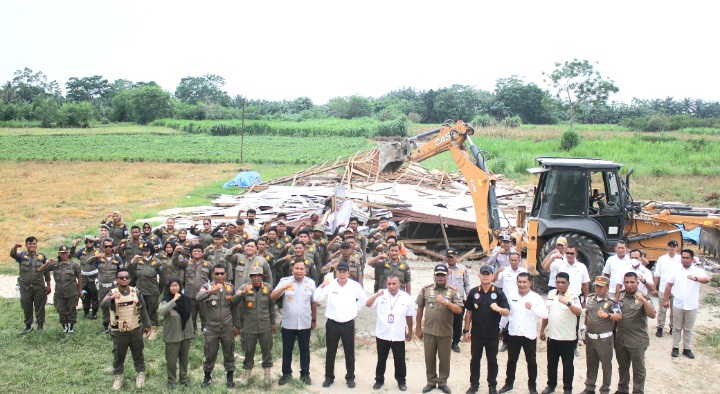 Tim gabungam BNNK Deli Serdang, Satpol PP, Camat Beringin dan lainnya usai merobohkan tiga cafe yang diduga tempat transaksi narkotika. (Ist/Sumutpost.id)