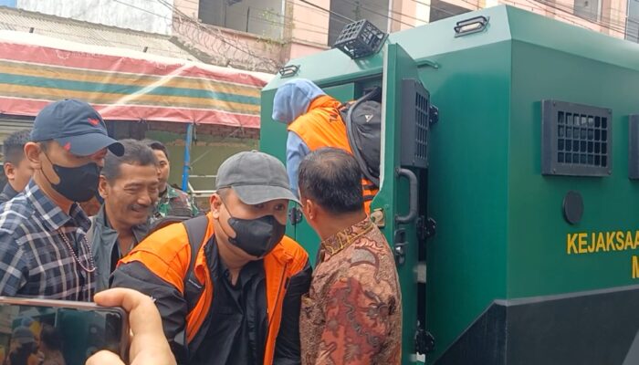 MEDAN, Sumutpost.id – Mantan Kepala Dinas Pekerjaan Umum dan Penataan Ruang (PUPR) Sumatera Utara, Topan Obaja Putra Ginting datang dengan mobil tahanan Kejaksaan Tinggi Sumut ke Pengadilan Negeri Medan.