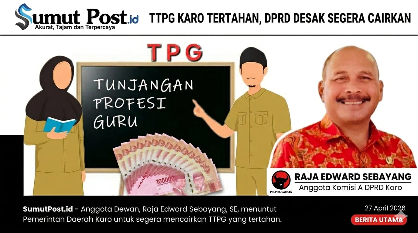 ​KARO, Sumutpost.id – Media sosial di Kabupaten Karo tengah diramaikan oleh gelombang keluhan dari ribuan guru Aparatur Sipil Negara (ASN) dan Pegawai Pemerintah dengan Perjanjian Kerja (PPPK). Keresahan ini dipicu oleh belum cairnya Tunjangan Profesi Guru (TPG) tahun 2025 (khususnya komponen 100% yang biasanya cair di akhir tahun), padahal saat ini sudah memasuki bulan April 2026.