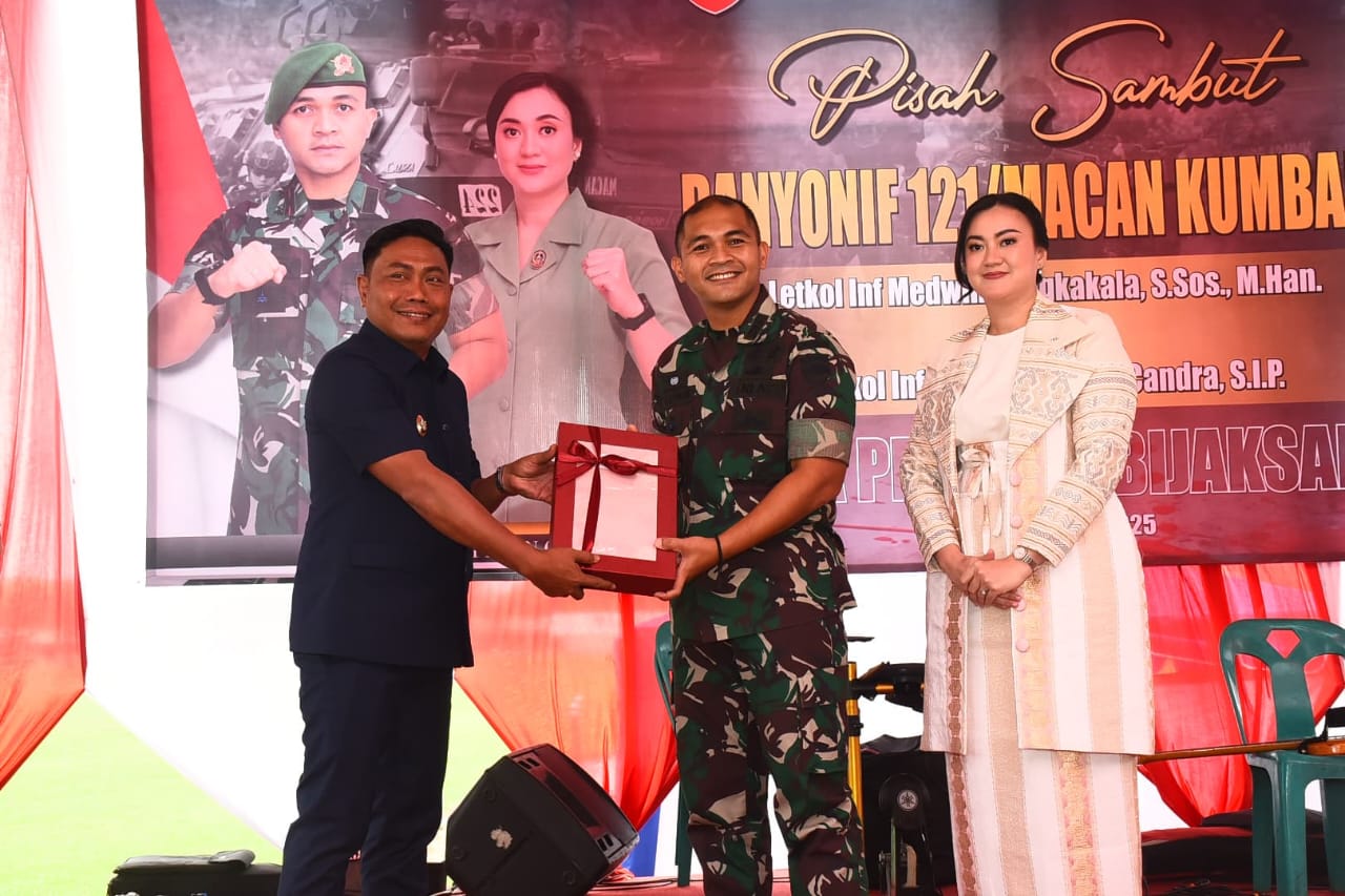 Ungkapan ini disampaikan Wabup, pada pisah sambut Dan Yonif 121/MK dari Letkol Inf Medwin Sangkakala SSos MHan (MK 42) kepada Letkol Inf Widhitama Dwi Candra SIP (MK 43) di Aula Wiradarma, Mako Yonif 121/MK, Kecamatan Galang, Sabtu (17/5/2025).